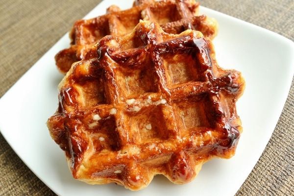 Liege waffles are a denser and sweeter waffle that is cooked in a circular shape. These waffles are studded with small pieces of pearl sugar. The pearl sugar melts and caramelizes during the cooking process, creating a sweet and crunchy texture that is unique to Liege waffles.